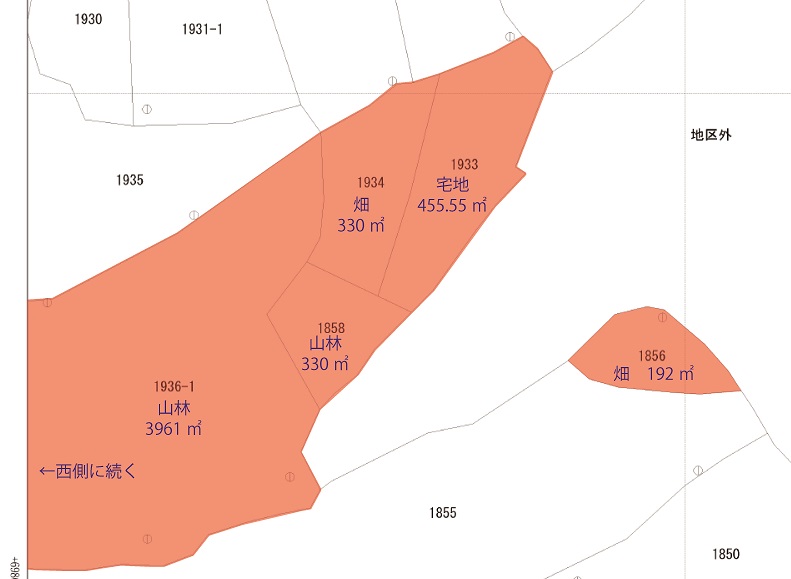 現状 山林(一部宅地有り) 都市計画法 都市計画区域外